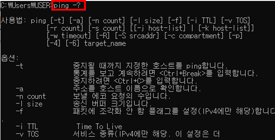 cmd 창에 ping -l 4000 -f 192.168.0.1 입력 >