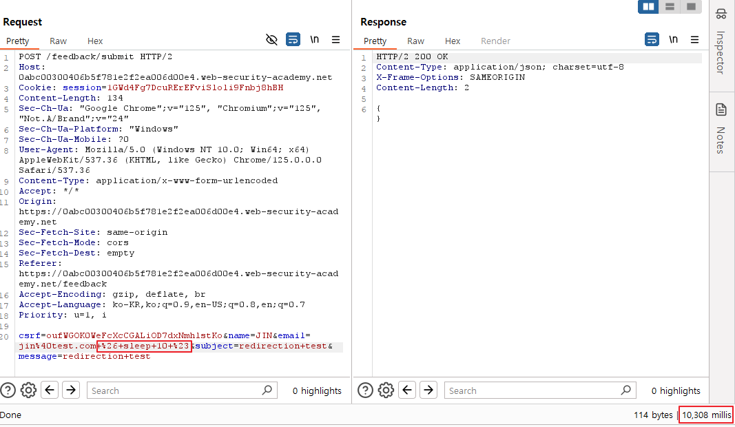 => 전송 값 중 email에서 blind command injection이 가능함을 확인