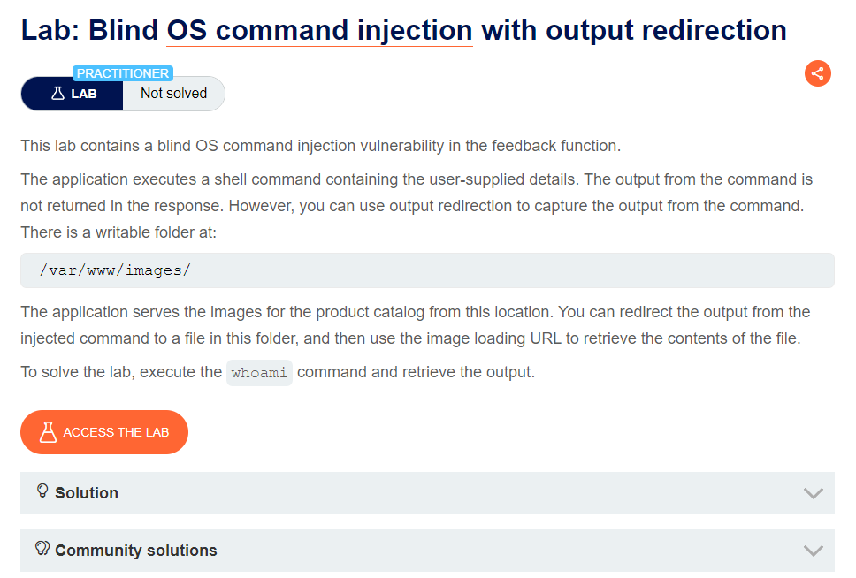 https://portswigger.net/web-security/os-command-injection/lab-blind-output-redirection