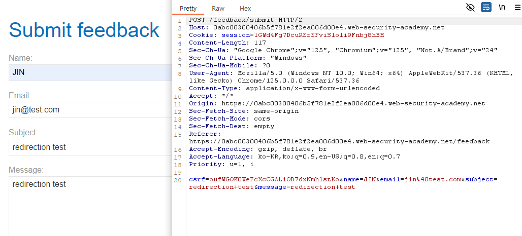 (2) Submit feedback을 클릭하여 전송되는 패킷을 확인합니다.