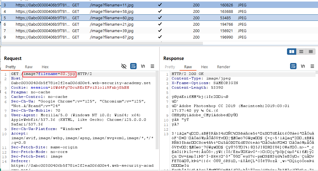 => 이미지 요청값 중 하나를 Repeater로 보내고 filename을 이전에 만든 파일명으로 변경