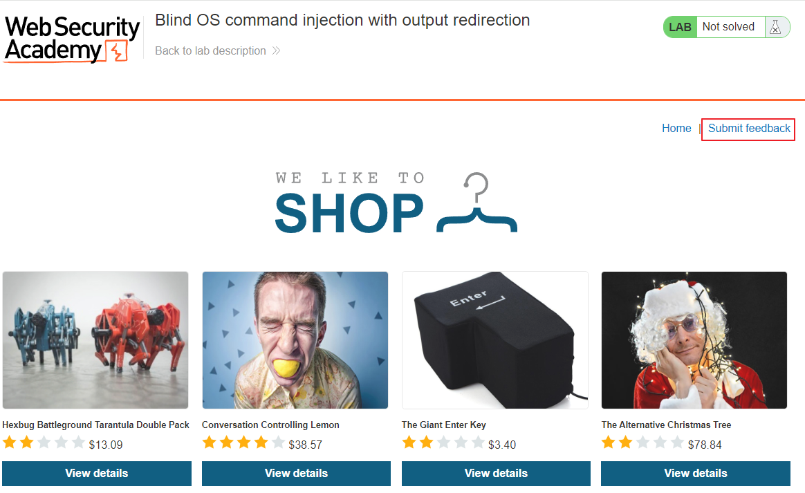 This lab contains a blind OS command injection vulnerability in the feedback function. The application executes a shell command containing the user-supplied ...