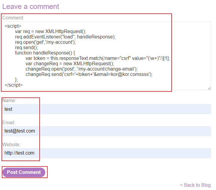 This lab contains a stored XSS vulnerability in the blog comments function. To solve the lab, exploit the vulnerability to perform a CSRF attack and change ...