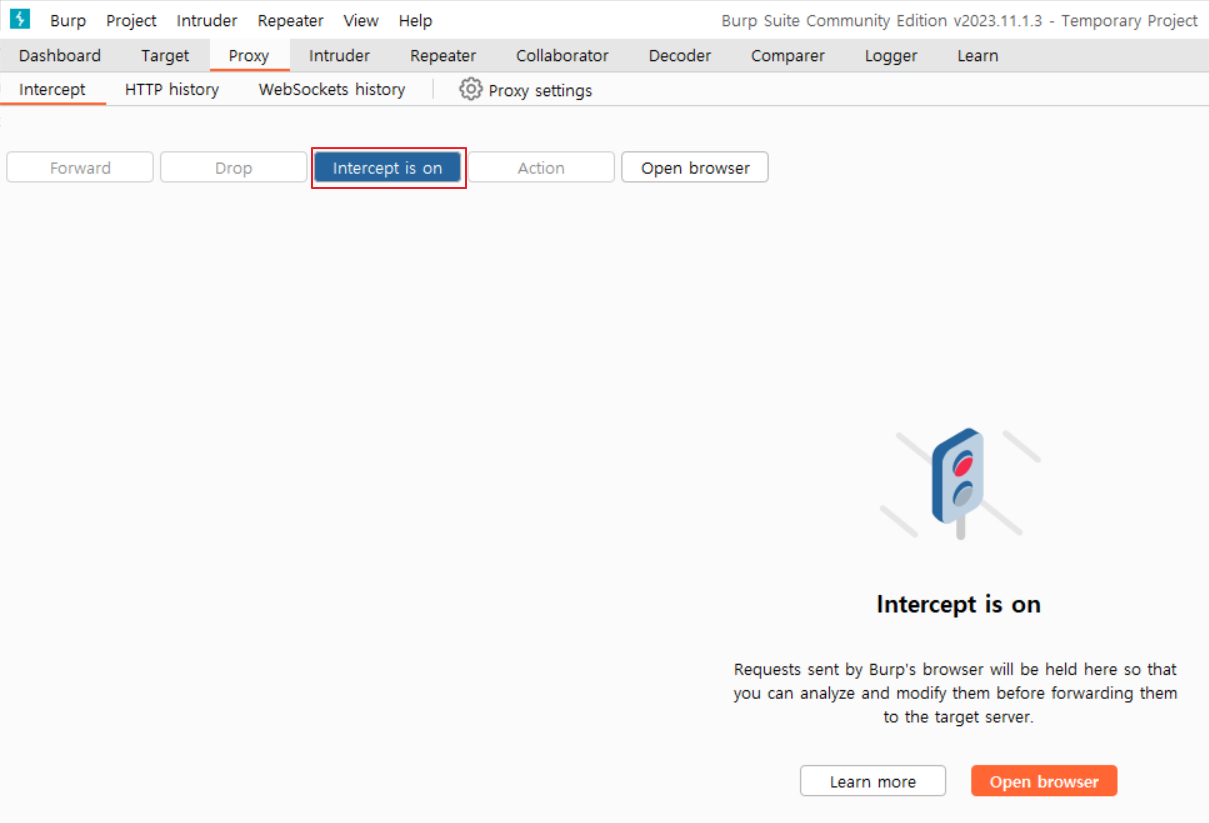 (5) Post Comment를 누르기전 Intercept is on으로 바꿔주고, 댓글을 등록합니다.