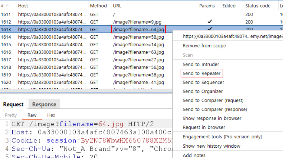 (1) burp suite 설정 후 블로그를 새로고침하고, 수집된 패킷을 확인합니다.