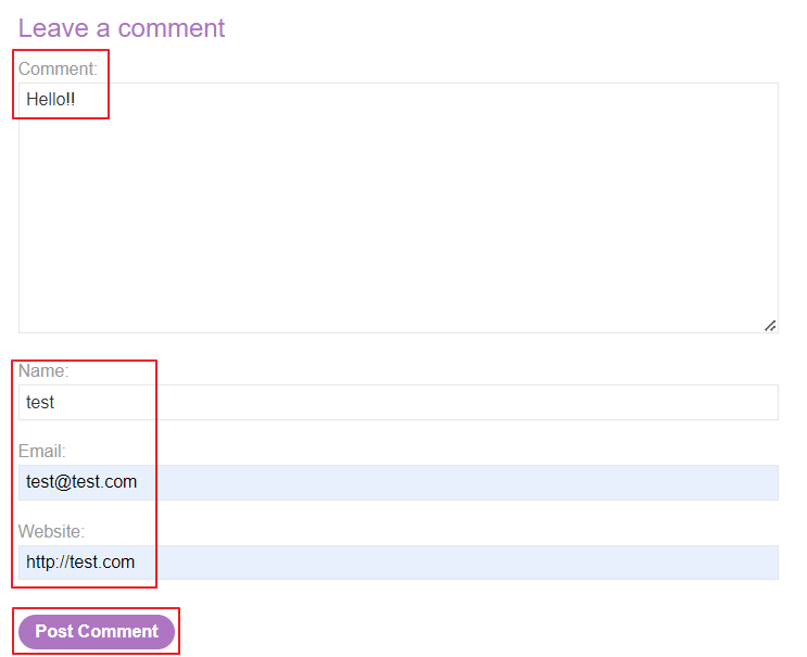 (6) Post Commnet를 클릭하고 burp suite를 보면 다음과 같이 comment 부분에 댓글 내용이 들어간 것을 볼 수 있습니다.