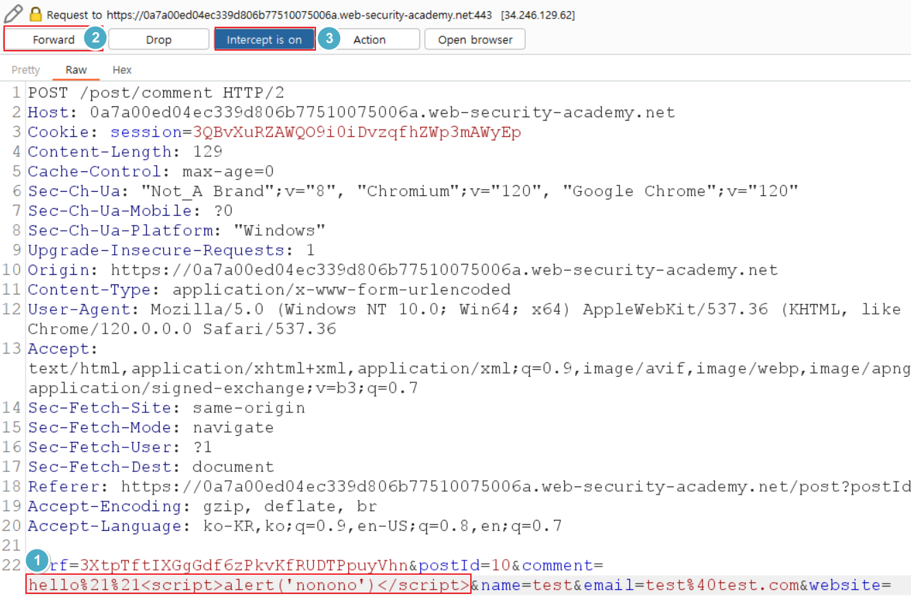 (5) Post Commnet를 누르기 전 Intercept is on으로 바꿔주고, 댓글을 등록합니다.