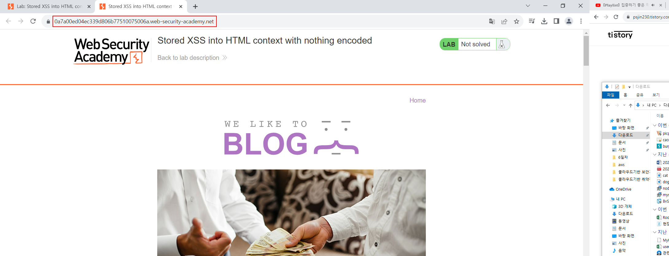 (8) 실습사이트를 보면 댓글이 작성된 것을 볼 수 있고, 댓글을 단 포스트로 이동하면 경고창이 뜨는 것을 볼 수 있습니다.