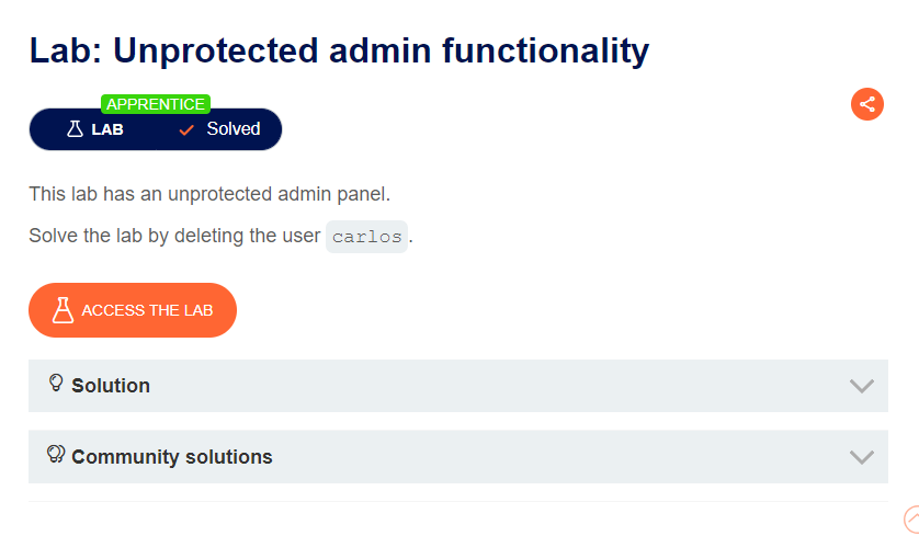 This lab has an unprotected admin panel. Solve the lab by deleting the user carlos. Solution Go to the lab and view robots.txt by appending /robots.txt to ...