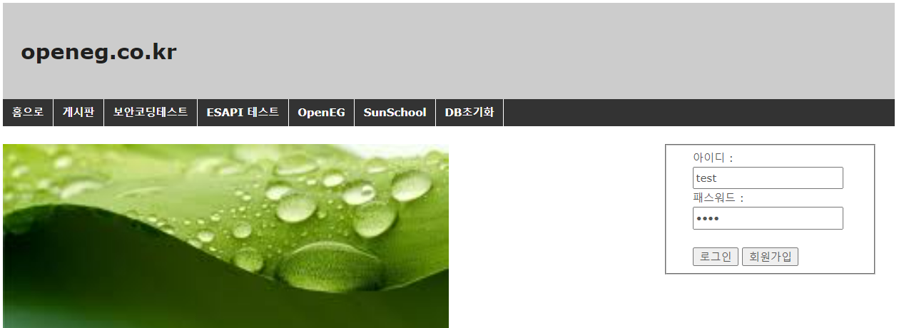 (3) http://victim:8080/openeg에 접속하여 로그인합니다. (test/test)