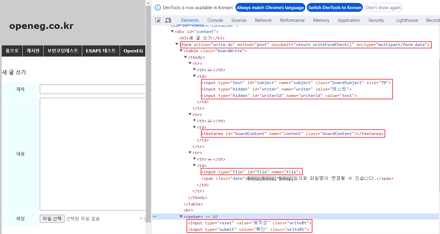 (5) 게시판 글쓰기 화면이 동작하는 코드를 확인합니다.
