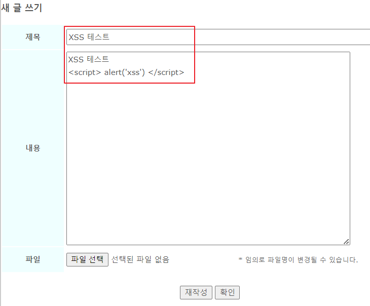 => 게시글을 작성하고, 작성한 게시글을 확인하면 스크립트 코드가 동작하는 것을 확인할 수 있습니다.